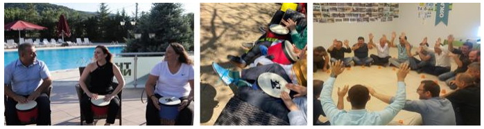 olma ve takım çalışması deneyimlenmektedir. Ritim atölyesinde; Orff ritim alet ve enstrümanları